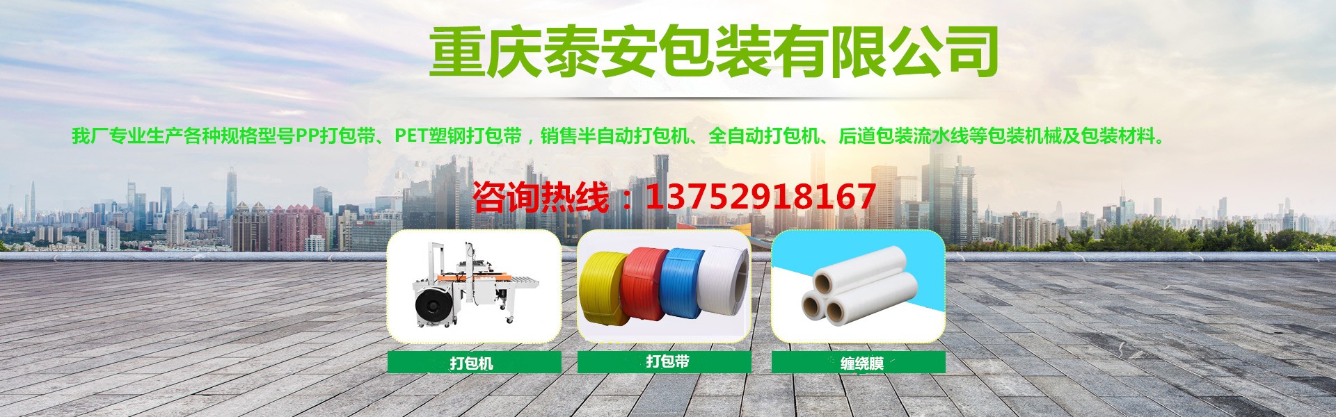 重慶泰安包裝有限公司(電話:13752918167)是專業(yè)生產各種打包帶、塑鋼帶、纏繞膜、膠帶,銷售打包機、纏繞機、封箱機、無人化流水線等各種包裝機械、包裝制品、包裝材料一體化的優(yōu)秀包裝企業(yè),始終堅持“穩(wěn)步擴張、精益管理”的方針,堅持“換位思考,了解客戶需求,主動服務,超越客戶期待”的服務理念,以熱忱的服務、優(yōu)良的品質、靈活的機制、創(chuàng)新的技術,向各新老客戶提供最優(yōu)質、優(yōu)價的產品和服務,具有對系列產品自主研發(fā)創(chuàng)新能力,能夠獨立根據用戶要求制版打樣。近十年來受到廣大客戶的信任,產品銷售遍及全國各大城市,與客戶形成自由平等、互利互惠的戰(zhàn)略合作關系,平均年銷售量2000多噸。